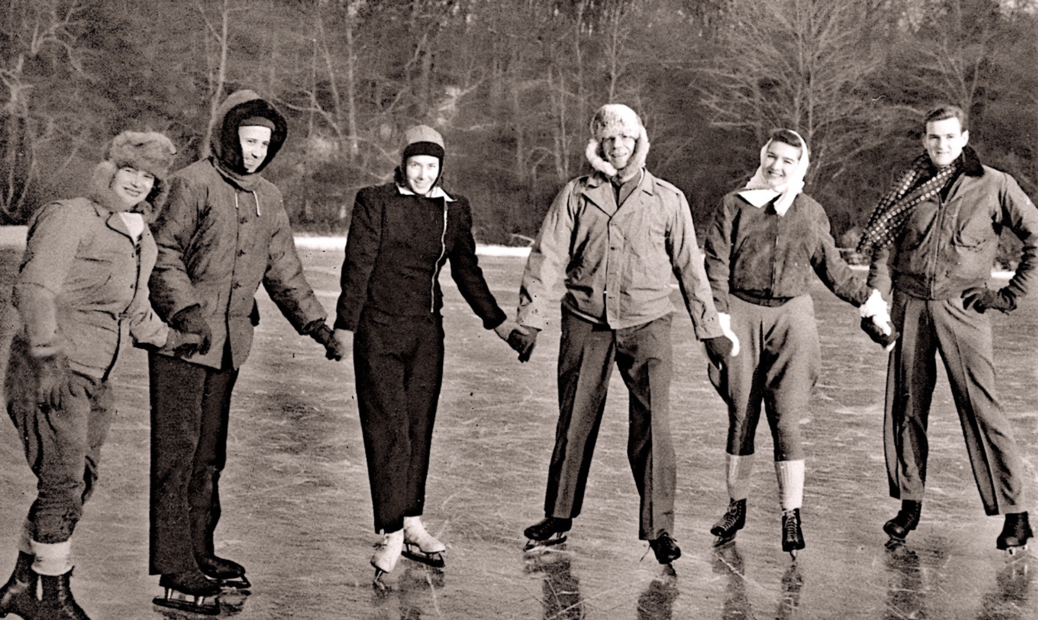 Youthful skaters in the 1960s could go to Board's pond for an afternoon’s fun, and, up into the late 1990s, I was able to ice skate on Harless Quesenberry's fish pond in early January. The group pictured here on the Irvin Huff mill pond seem to be wearing both hockey skates and figure skates. They were assured of safety after Irvin Huff (1882-1969) drove his car on the ice to confirm that it was frozen solid.