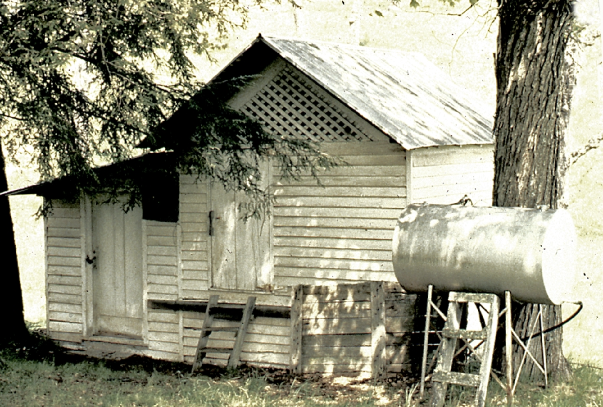 "The ice house which served the community was on the bank between the house and West Fork. (In winter, blocks of ice would be cut and stored here when ice formed on the surface of West Fork.) When someone in the community was sick, an individual would be sent to get ice to 'break the fever.'"