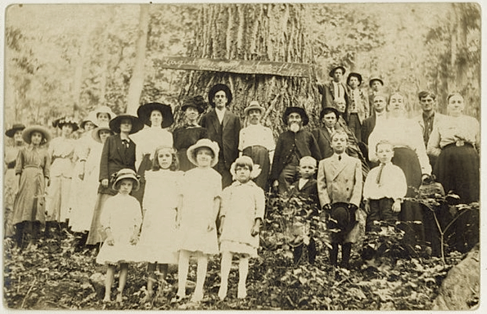 In early Floyd County, the longer two-man crosscut saw, four to ten feet long, was first used for buck-cutting or sectioning axe-felled trees. Then, after late 19th-century manufacturers began promoting "friction-less" technological improvements and the addition of rake teeth, sawyers began using the two-man saw to fell large trees.