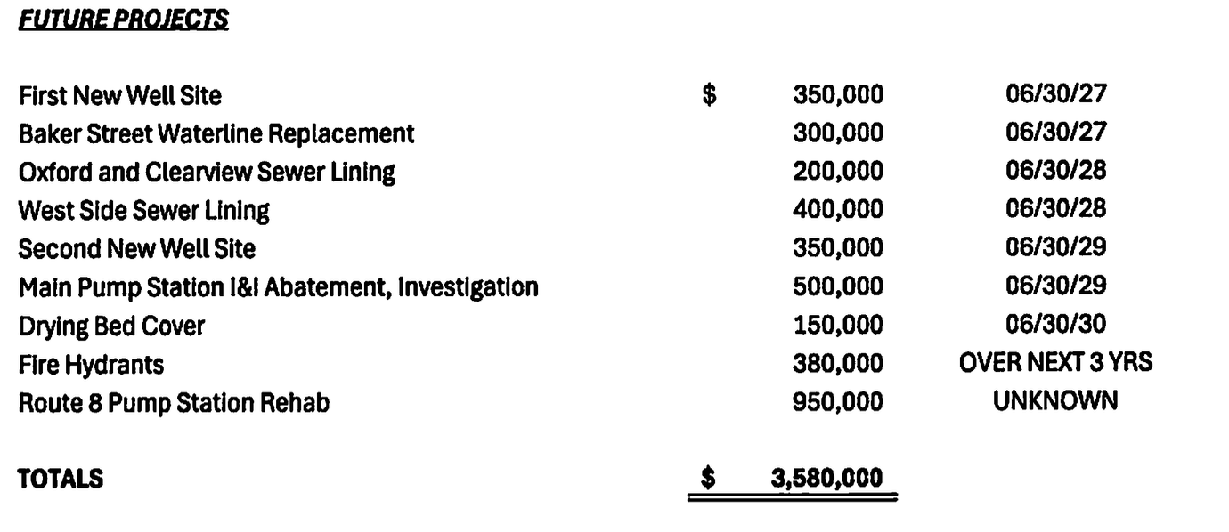 Floyd’s “very small” system and “narrow rate base” simply don’t allow for accumulating the fund fast enough to address issues without exponentially increasing rates for town residents each year for the foreseeable future.