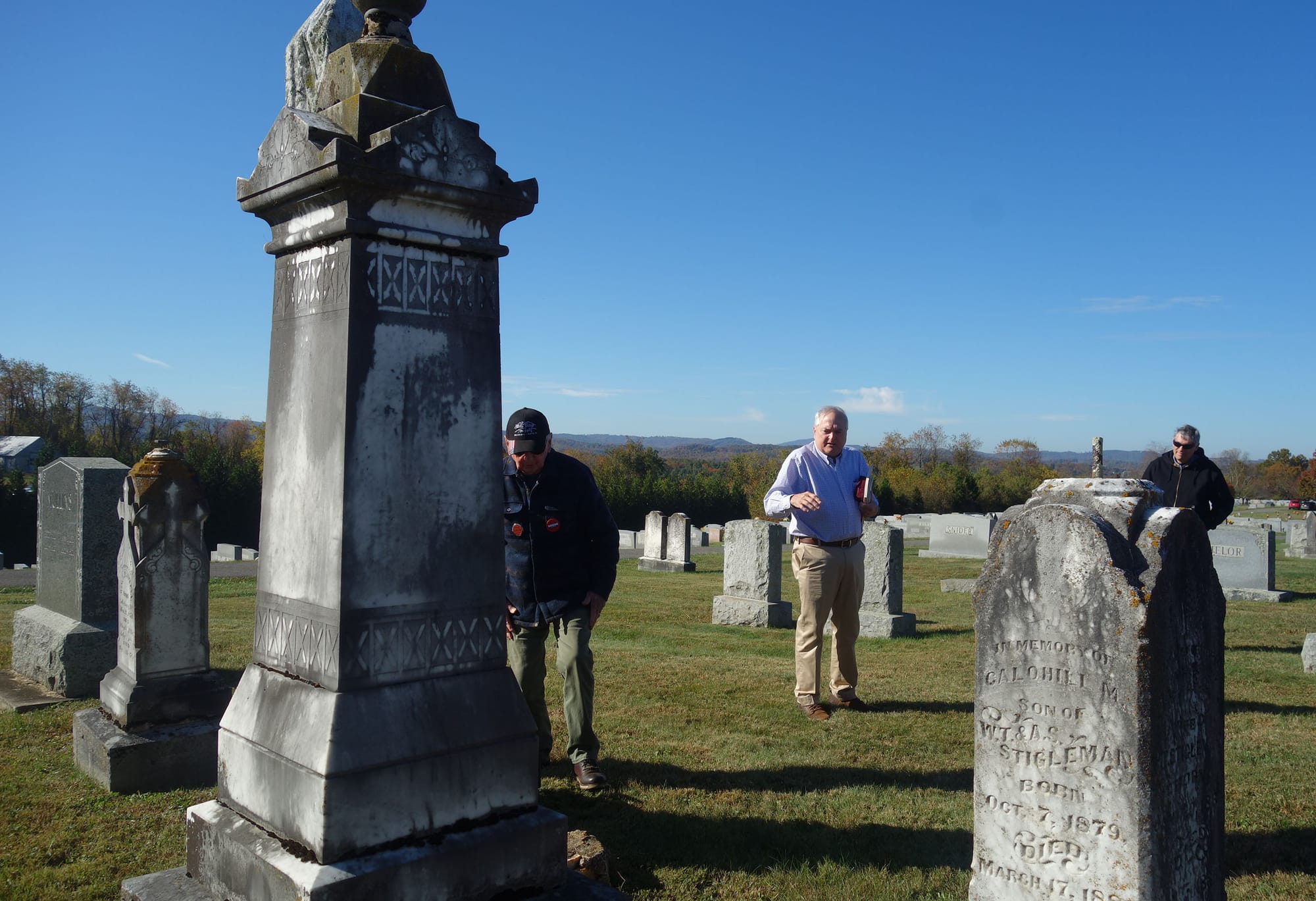 Stopping at the grave of Dr. C. M. Stigleman, a physician, school superintendent, mayor, and Civil War veteran, Williams said, “He was probably one of the three or four most important people in Floyd, in terms of what he did. He was a leader in getting people educated.”