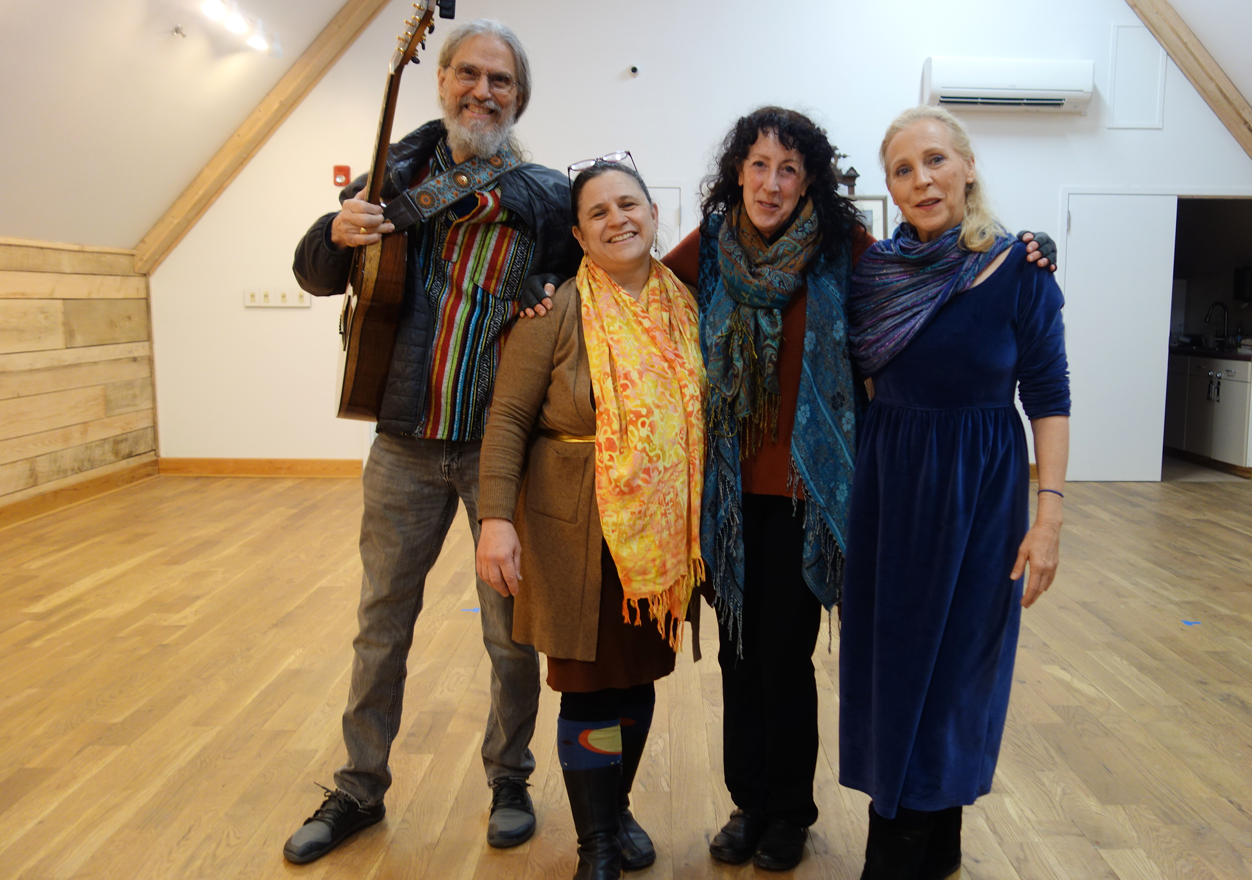 A third dance teacher, Tajali Tolan, who just moved to Floyd from Montana, led some of the dances, along with Theo-Maurelli and Rose. Jeff Tiebout provided acoustic guitar music to accompany the dances.