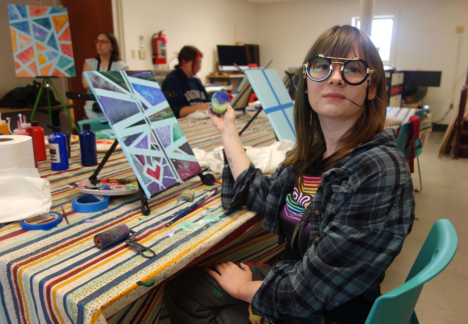 During the March 31 excursion, students broke up into two groups and alternated between painting with FCA artist/paint instructor Ivy Morris and making stained glass with instructor Lisa Thompson. Thompson is an assistant library branch manager and a Floyd Town Council member who has been making stained glass art, including custom large-scale work for homes and churches, since 1996.