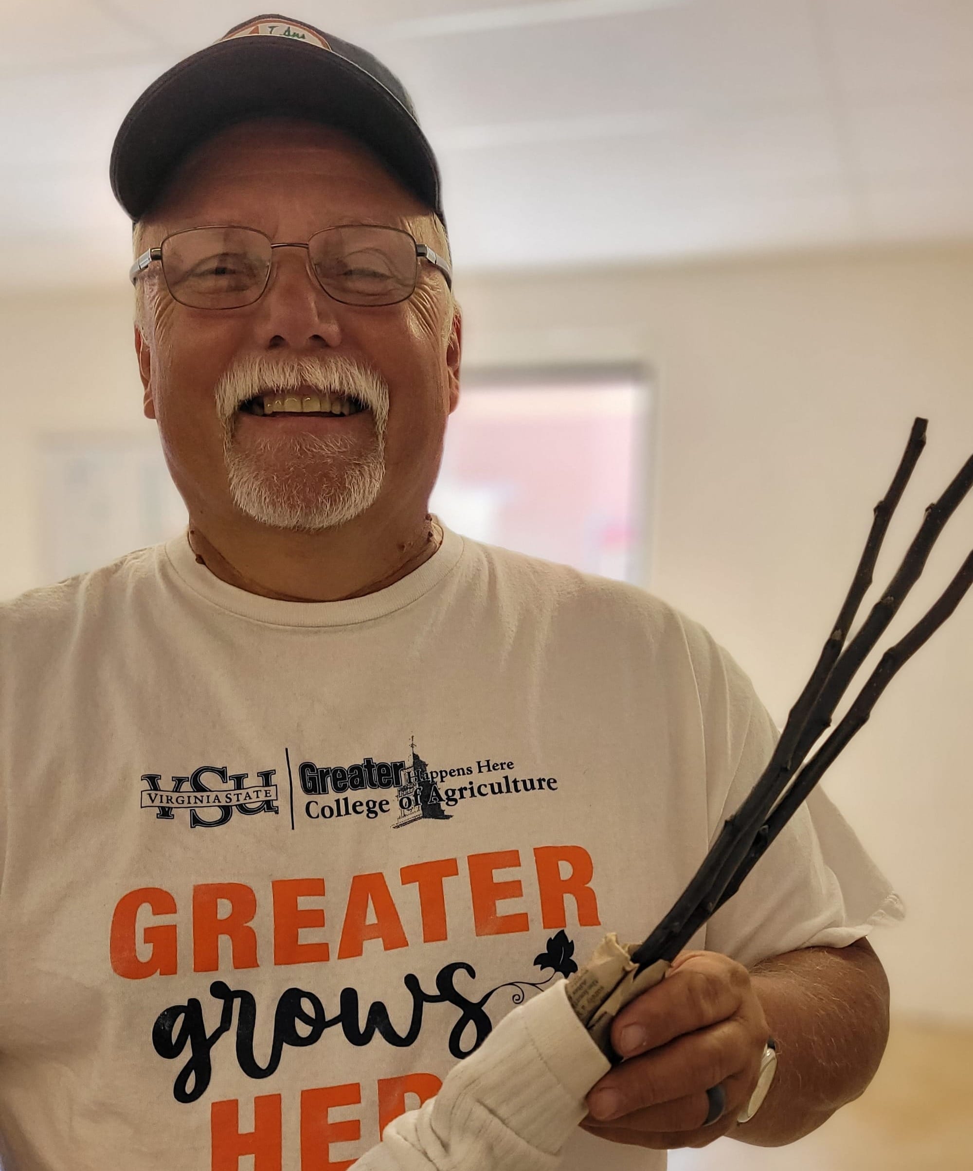 Brent Noell from the Virginia State University Small Farm Outreach program brought a handful of apple cuttings to the April 3 class with hopes of grafting them. He said that some of the pieces were a part of a friend's tree, which his friend thinks is dying, and other pieces were from a tree gifted to his brother. "When he and his wife got married 45 years ago, my deceased father and my mother gave him the apple tree, and they planted it at their house. Now the apple tree is dying.” Noell brought the scions to the class to learn how to preserve these trees for his friends and family.