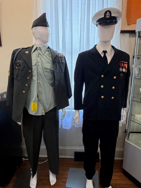 Uniforms on display as a part of '250 Years of Patriotism and Service' at The Ridgemont. Photos by Katie Gravely