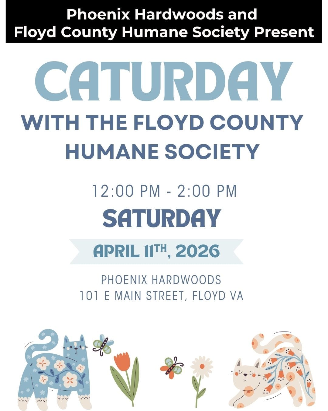 Additionally, Floyd County Humane Society and Phoenix Hardwood are holding a Caturday adoption event from noon until 2 p.m. on Saturday, April 11. Visit the shop at 101 E. Main St. to meet your next family member.