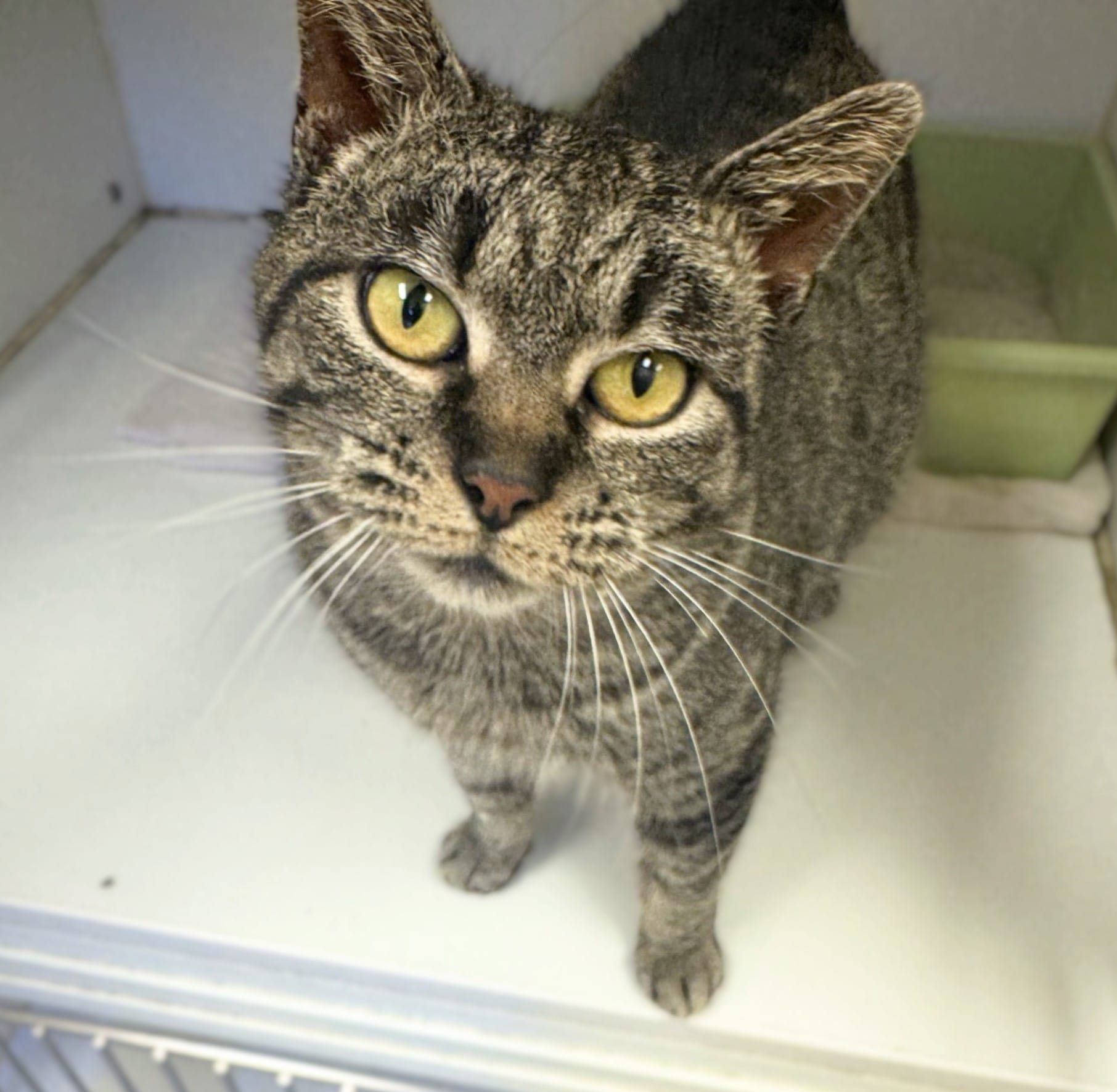 Found very pregnant, humane society volunteers took Gracie in and gave her a safe place to have her kittens. She has been such a good mom to her three babies.