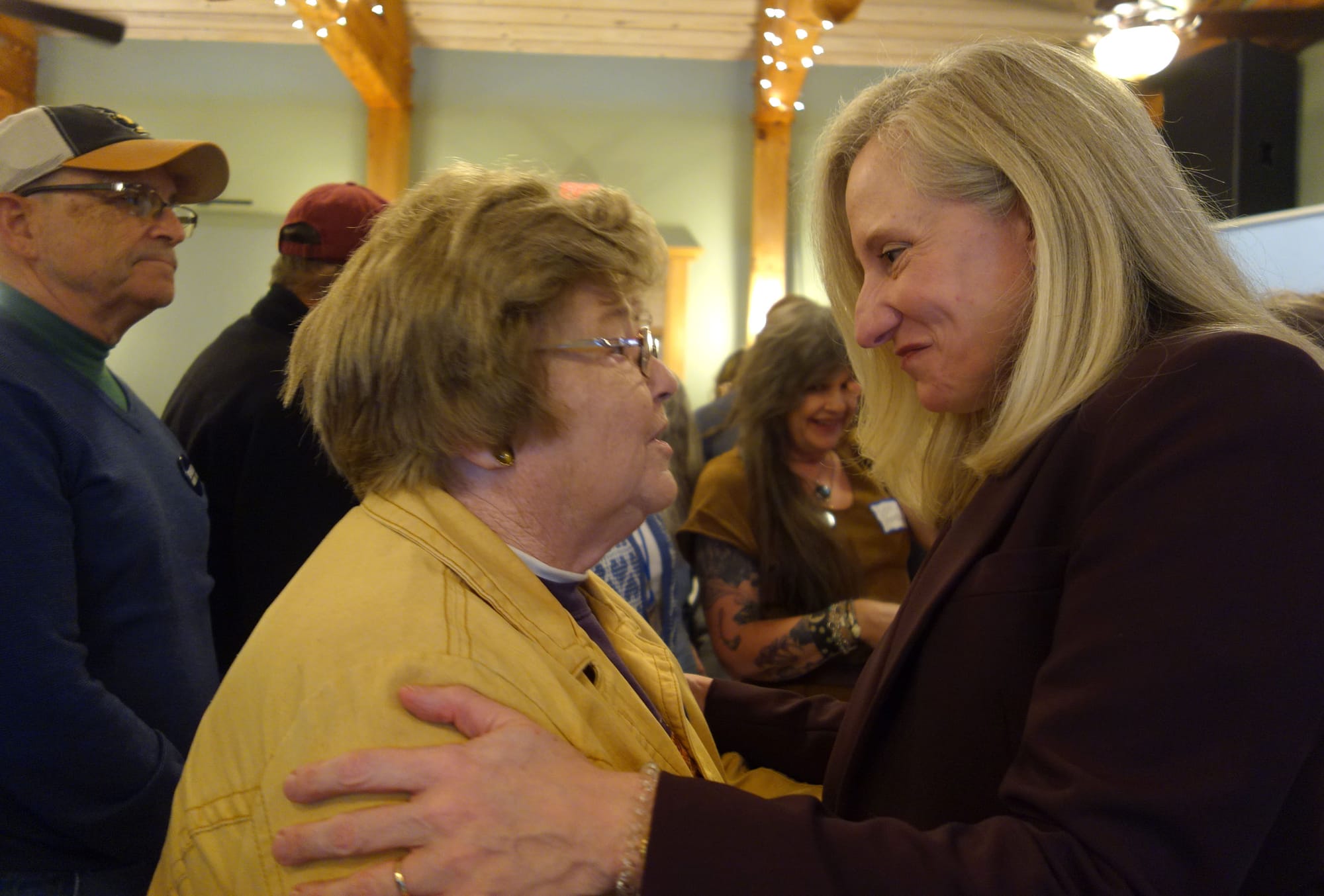 Following her address, Spanberger spent time connecting with attendees, mostly Floyd Countians. There was excitement, lots of smiles, and sometimes hugs, like the one with Janet Keith, after Keith told her, "I'm a retired teacher and an active farmer. You have my vote, and you have my prayers."